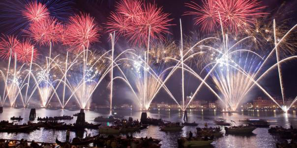 La Festa del Redentore è tra le festività più sentite dai veneziani, in cui convivono l’aspetto religioso e quello spettacolare. La notte del sabato, i fuochi pirotecnici attraggono migliaia di visitatori: giochi di luce e di riflessi sull’inimitabile palcoscenico del Bacino di San Marco tracciano un caleidoscopio di colori che si staglia dietro le guglie, le cupole e i campanili della città. Per circa 40 minuti, Venezia sarà avvolta da circa 6.000 fuochi d’artificio, 2300 kg di materiale esplodente e 420 metri di fronte di fuoco. Un sistema radiocomandato da oltre 250 unità, posizionato su 5 grandi zattere e 25 pontoni più piccoli, darà vita a figure incantate nel cielo: stelle, cerchi, arabeschi e cascate dorate. Uno spettacolo indimenticabile.