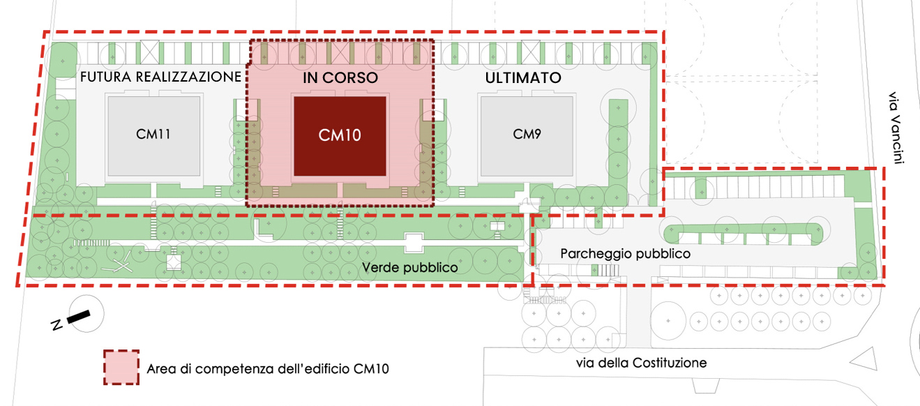 L’area della futura realizzazione è una zona ricca di verde nel centro cittadino e a 5 minuti di auto dal Centro Commerciale Le Piazze.